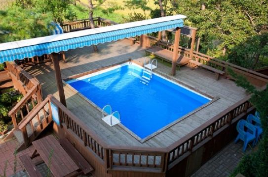 "숲속에 자리하고 있어서 뷰와 공기도 맑고 좋았다"는 평과 함께 가족 단위 투숙객에게 특히 만족도가 높습니다. 아이들과 함께 즐길 수 있는 작은 수영장과 슬라이드가 있어 가족 여행이라면 이곳을 강력 추천합니다. 단품 메뉴 또는 뷔페식 조식(유료)을 제공하는 것도 큰 장점입니다.